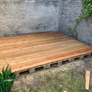And now the last thing did You see on the first picture that we build our decking under the hot tub from palets. Here is some pictures how to do it Yourself.